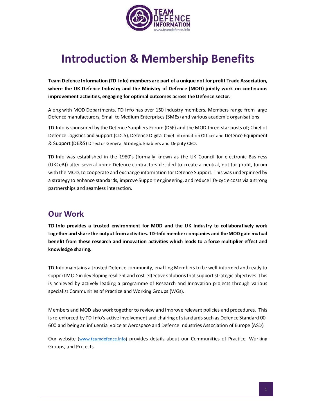 TD-Info Membership Benefits