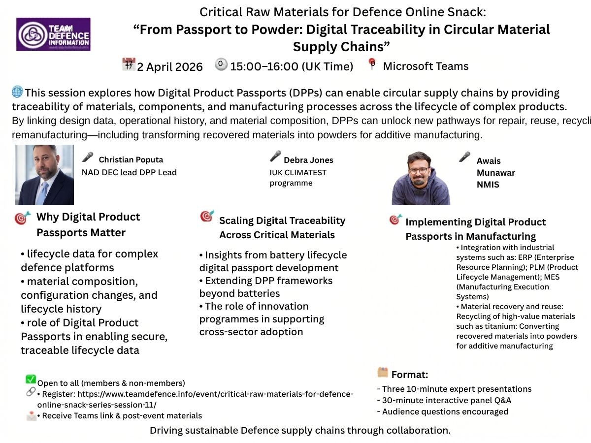 Critical Raw Materials for Defence: Online Snack Series – Session 11