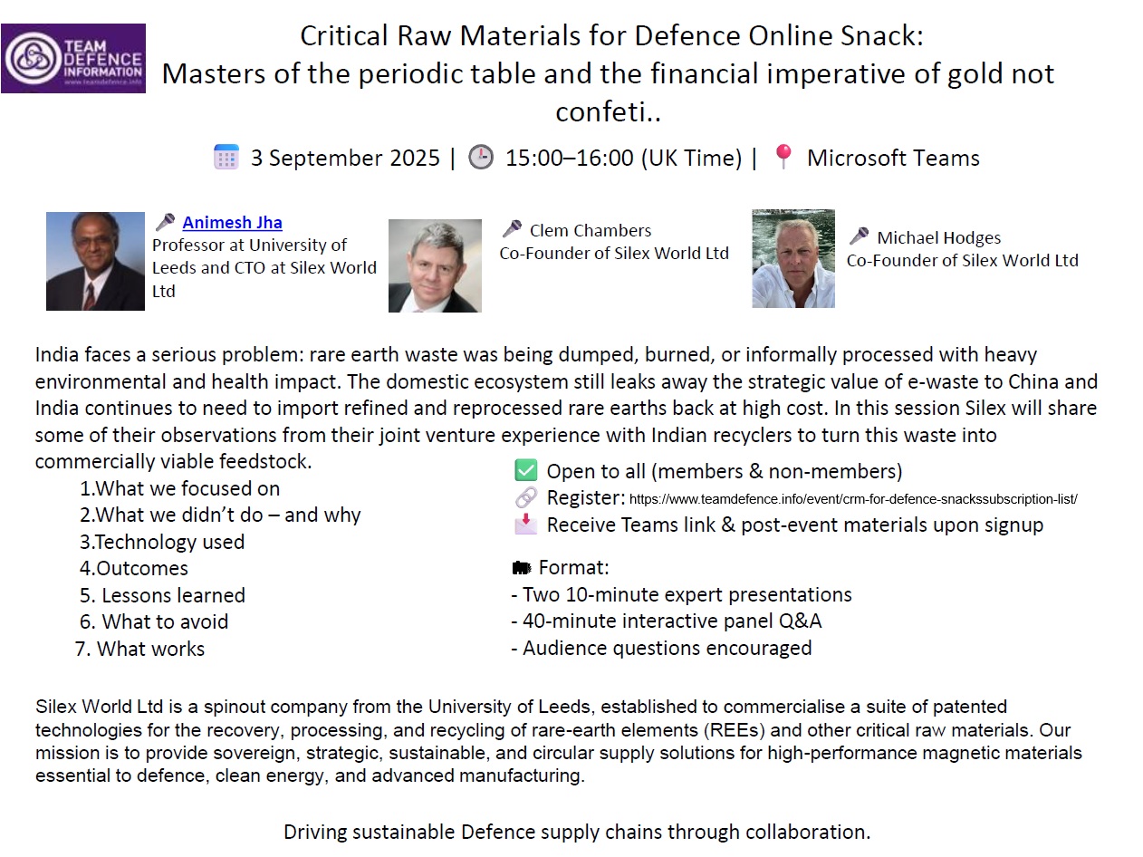 Critical Raw Materials for Defence: Online Snack Series – Session 2